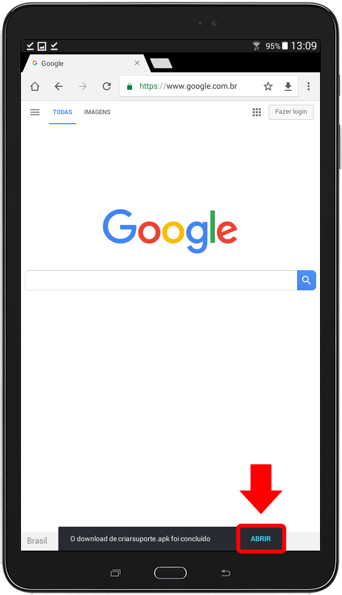 2º – Aparecerá um aviso para baixar o arquivo “criarsuporte.apk”. Clique em “Fazer o Download”.