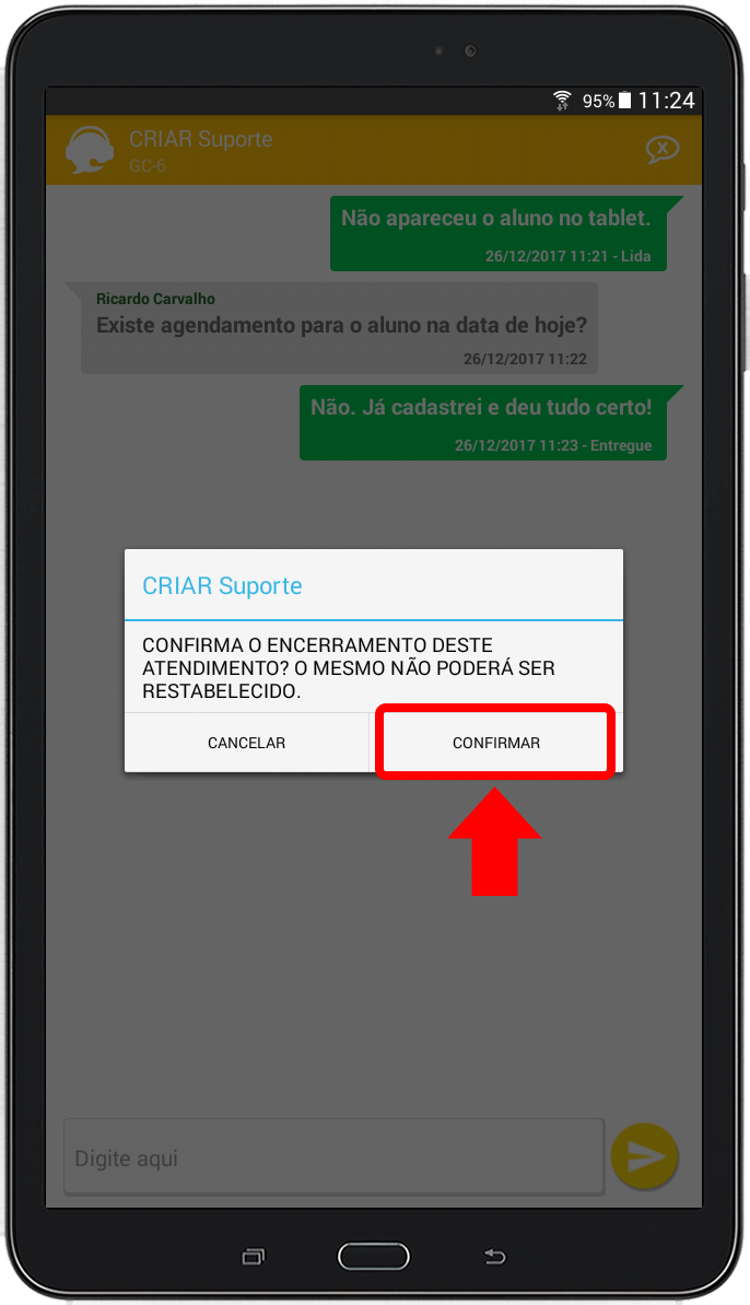 22º – O Sistema solicita a confirmação do encerramento do atendimento. Clique em “Confirmar”.