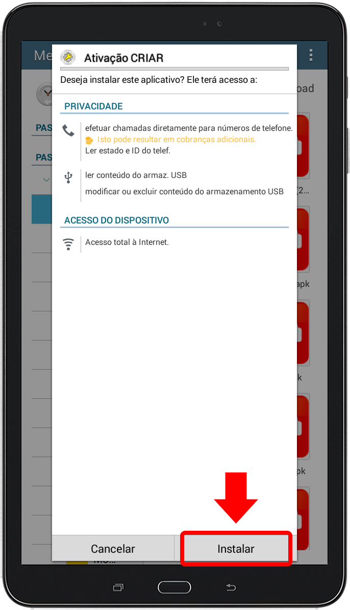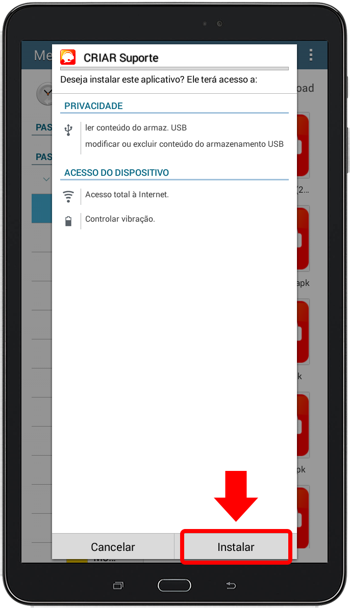 INSTALAÇÃO DO APLICATIVO NO TABLET DA CRIAR